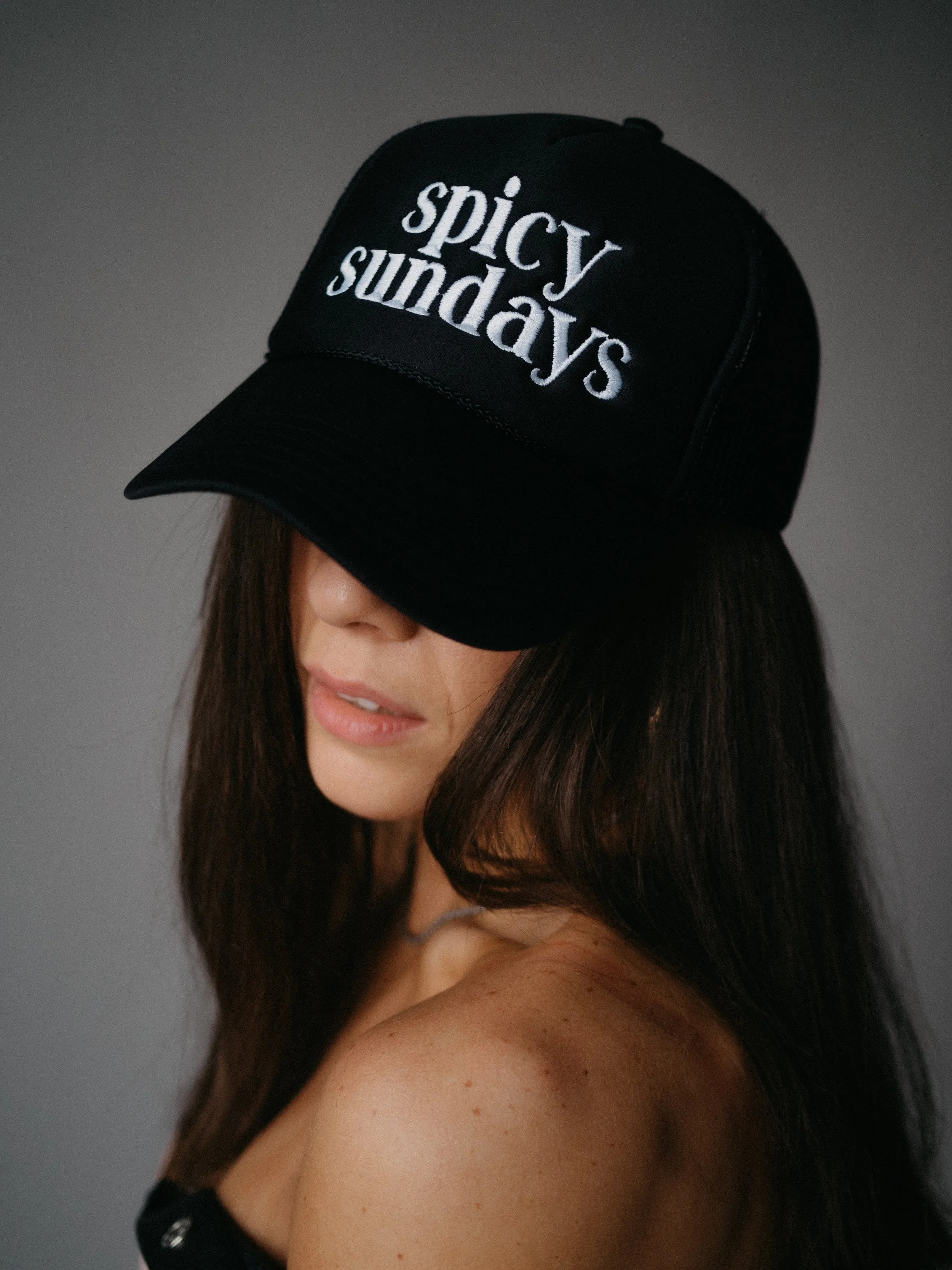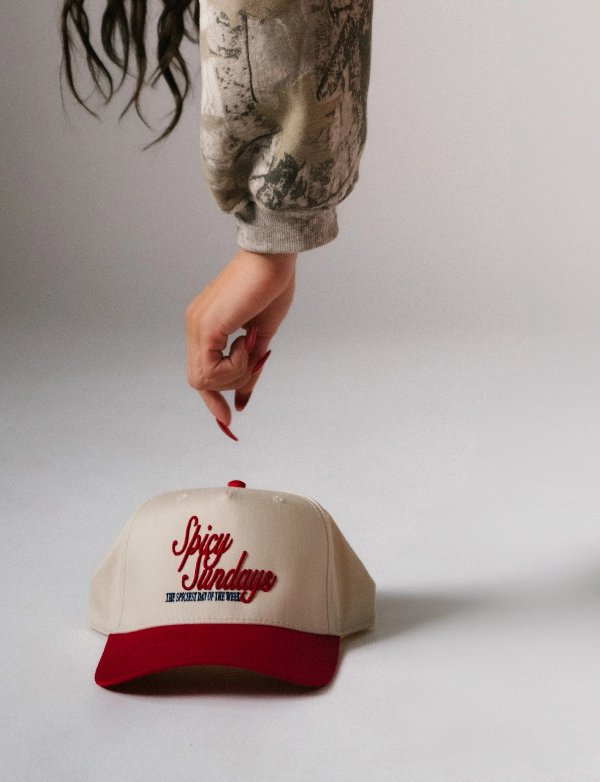 a collection of capsule pieces including the original Spicy Sundays crewneck sweatshirt
