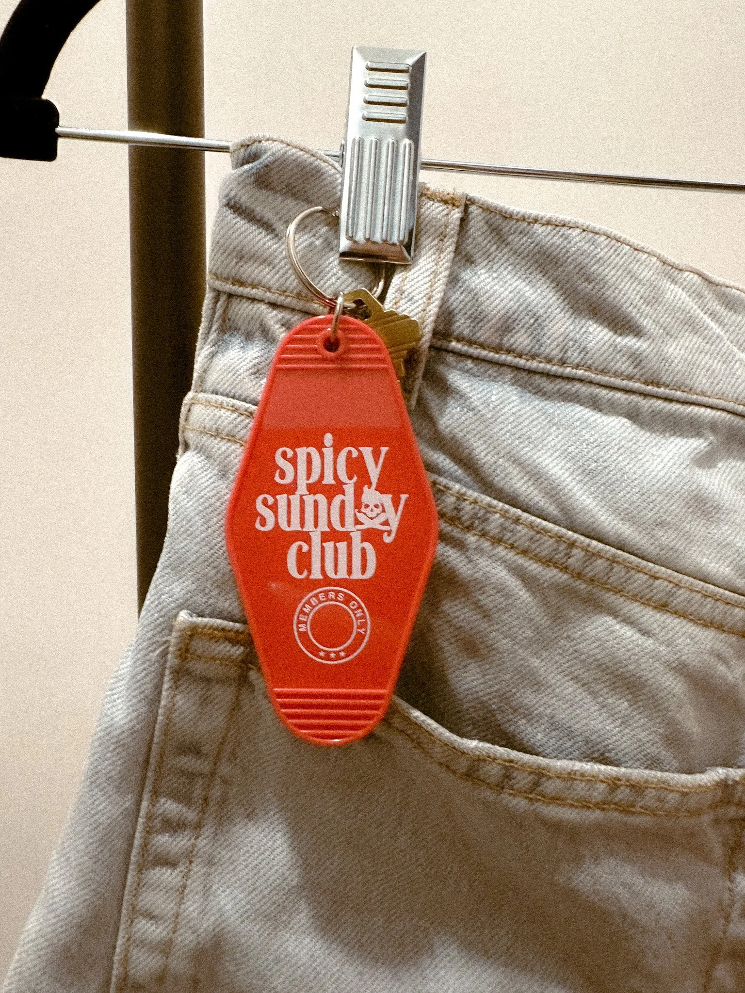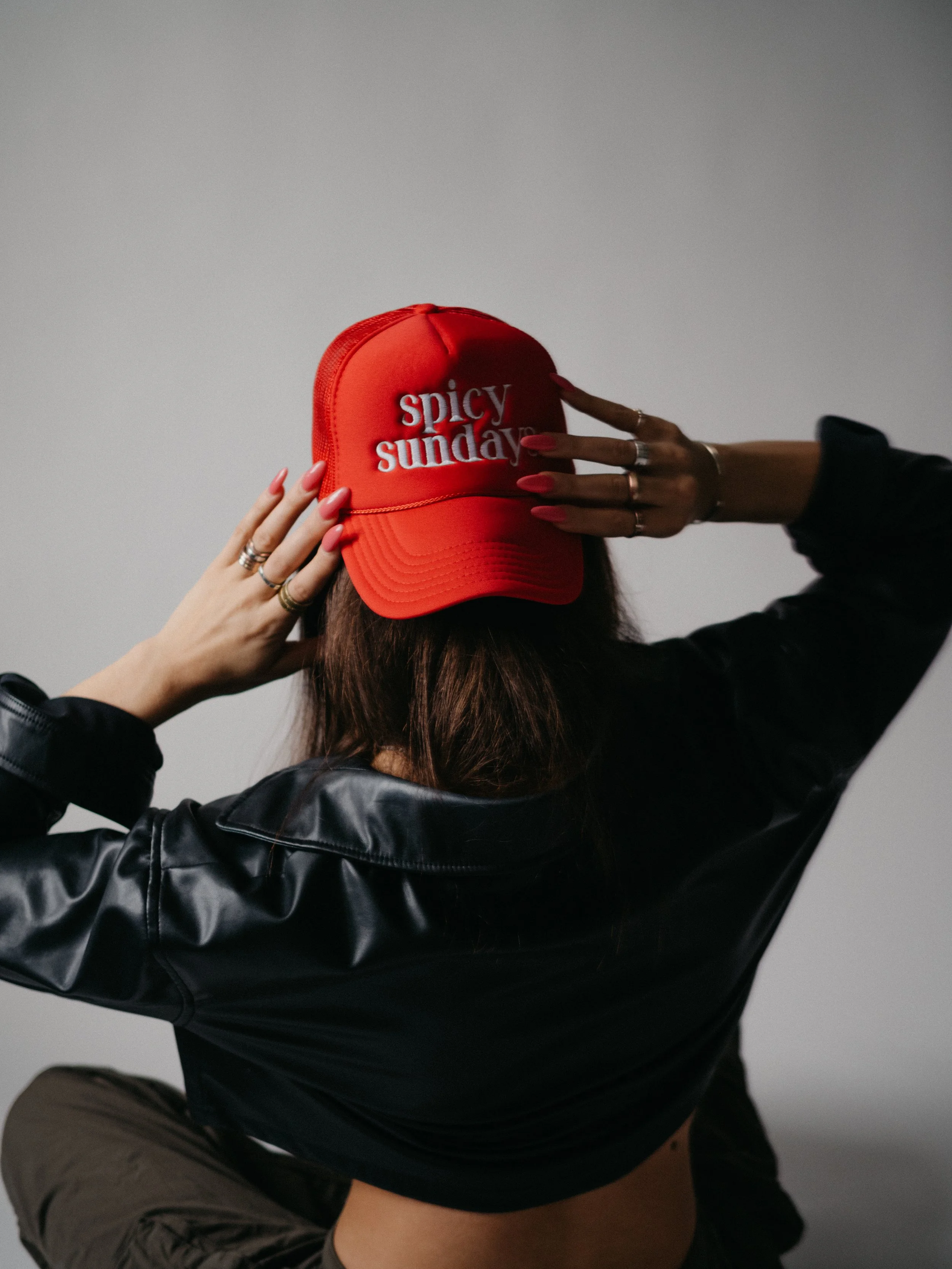 Categories: All shop All | shop | spicy sunday *members only* motel inspired keychain $5.00 CAMO CLUB HOODIE $90.00 EMBROIDERED TRUCKER HAT $48.00 SPICY SUNDAYS oversized crewneck - vintage white $132.00 SPICY SUNDAYS mid profile trucker hat - black $39.00 Sold out SPICY SUNDAYS mid profile trucker hat - red $39.00 SPICY SUNDAYS oversized vintage tee $50.00 Sold out SPICY SUNDAYS oversized vintage tee -- '95 $50.00 Sold out STAY SPICY crop rib halter top $30.00 Sold out Spicy Sundays stickers $3.00 SPICY SUNDAYS oversized crewneck - vintage grey Sale Price: $92.00 Original Price: $132.00 Sold out SPICY SUNDAYS oversized crewneck - vintage black Sale Price: $102.00 Original Price: $140.00 Sold out